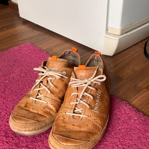 Tyylikkäät konjakinväriset Bugatti nahkakengät joustonauhoilla koossa 43. Käytön jälkiä, mutta siistissä käyttökunnossa ja paljon kilometrejä jäljellä. Ostaja noutaa Kaarinasta tai maksaa postikulut.