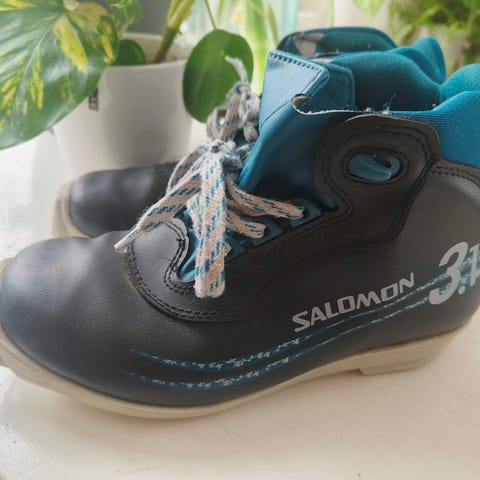 Lasten hiihtokengät, ehjät ja siistit, kahdella pohjauralla. Koko 36.5