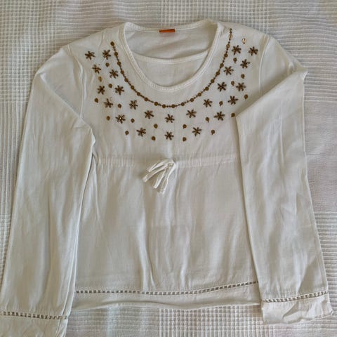 S-Style valkoinen collaripusero kokoa 140 cm. Edessä pääntiellä 1 nappi. Hyväkuntoinen.