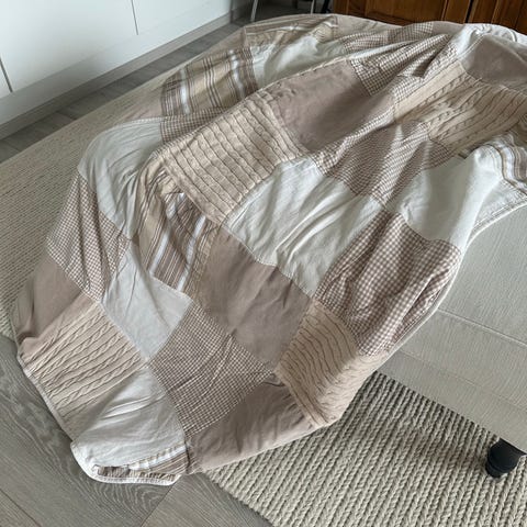 Helmenharmaa, tekoturkispintainen torkkupeitto.