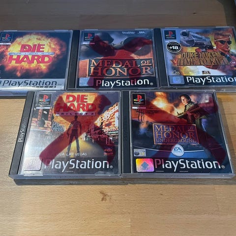 PlayStation pelipaketti, johon sisältyy neljä peliä: Doom, Final Doom, Quake II ja Wipeout 2097. Pelit ovat alkuperäisissä PlayStation-koteloissa kansipapereineen. Sopii keräilijälle tai pelaajalle, joka etsii klassisia PlayStation-pelejä toimintaa ja ajopeligenreä varten.