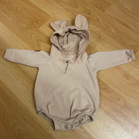 Metsolan nalle kuosi romper hupulla, college kangas, koko 62/68.