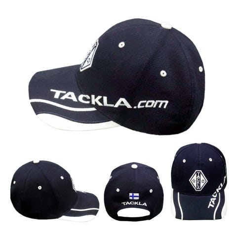 Hockey-painatus lippalakki, logo edessä ja kuvio sivulla, 6 paneelia. Yksi koko, säädettävä. 100 % puuvillaa