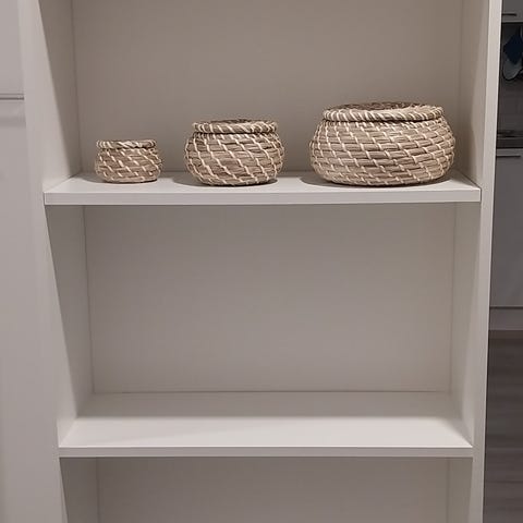 Jyskin kaksi valkoista kapeaa kirjahyllyä , yhteishinta 15e