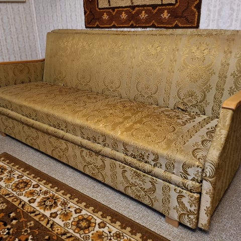 Vintage 1900-luvun alkupuolen hyväkuntoinen sivustavedettävä kokopuinen Jugend vuodesohva.