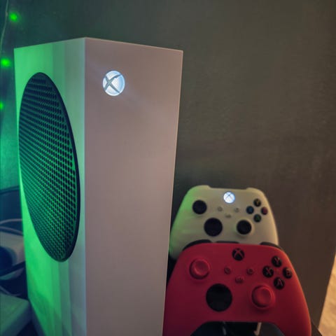 Xbox Series S -pelikonsoli kahdella ohjaimella