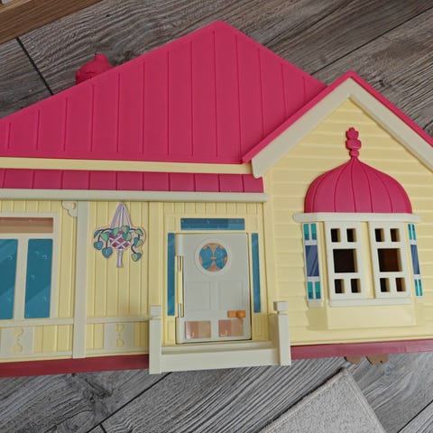 Bluey leikkitalo, jossa useita huoneita kahdessa kerroksessa. Talossa on keittiö, olohuone, makuuhuone sekä kylpyhuone, joissa kiinteitä kalusteita ja irrotettavia huonekaluja, kuten sänkyjä, tuoleja ja pöytiä. Mukana useita Bluey-hahmoja, joilla voi leikkiä talon eri huoneissa. Muovinen lelu sopii roolileikkeihin ja Bluey-ohjelman hahmojen kanssa leikkimiseen.