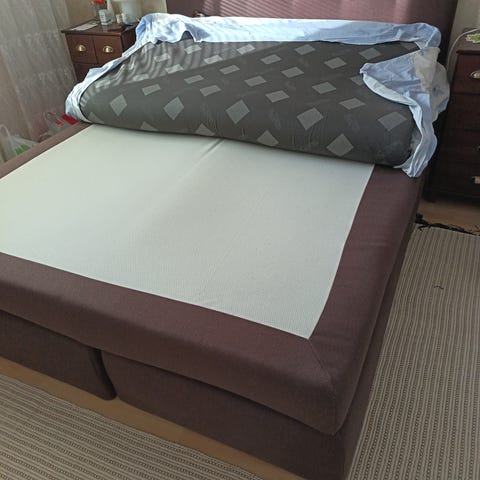 Veken unia 100 jenkkisänky. Muistaakseni jäykkyydeltään L. Ostettu 2022. Hyväkuntoinen lukuunottamatta kissan tekemiä langanpakoja. Harmikseni joudun myymään muuton takia. Metallijalat. Profiloidun vaahtomuovipetauspatjan (5cm paksu)saa halutessaan mukaan mutta se vaatii pesun.