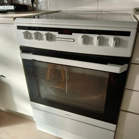 Reilu neljä vuotta vanha liesi. Vasen etulevy toimii vaihtelevasti ja uuniluukun tiiviste poikki oikeasta reunasta. Liesi ollut näistä huolimatta säännöllisesti käytössä. Korjauskustannus arvio 410,50€.