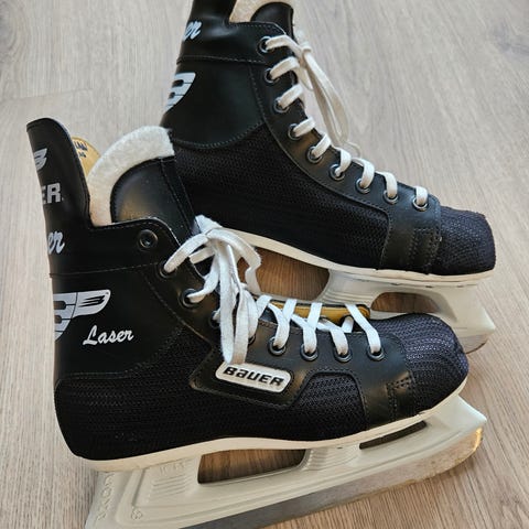 CCM jääkiekkoluistimet, koko 37. Lasten/nuorten malli. Väritys musta–sininen valkoisilla yksityiskohdilla. Nauhakiinnitys. Soveltuvat jääkiekkoon ja yleiseen luisteluun jäähalleissa ja ulkojäillä.