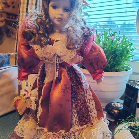 Myydään posliininukke, sopii keräilyyn. Nukke seisoo "standilla". On ehjä.