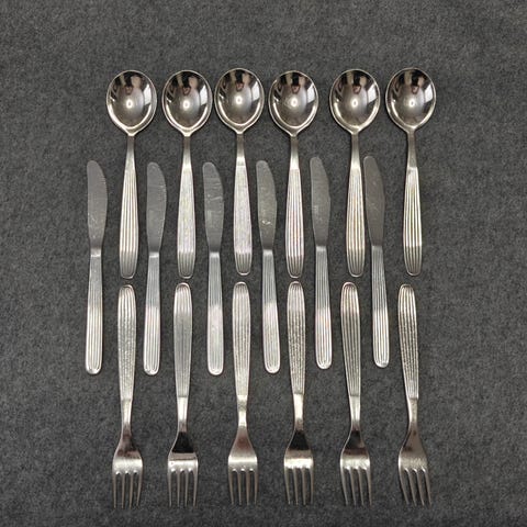 Hackman Scandia-tarjoiluvälinesettiin kuuluu ruostumattomasta teräksestä valmistettu tarjoiluhaarukka ja tarjoilulusikka.