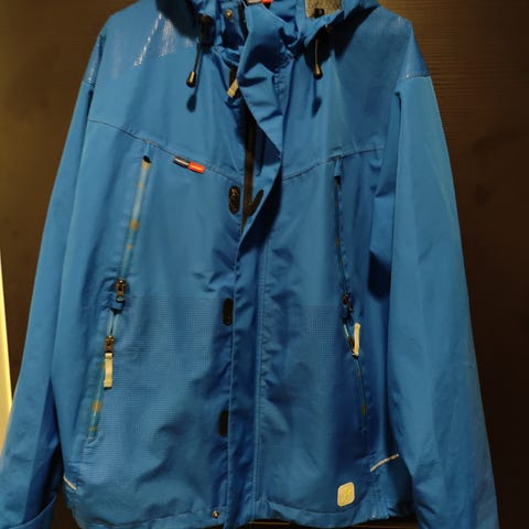 Vain muutaman kerran käytetty miesten punainen ulkoilutakki. Koko 54-56. Napitus ja vetoketju. Huppu kauluksen sisällä. Sisäpuolella tikattu toppaus. Ulkopuolella 4 vetoketjutaskua, sisäpuolella povitasku. Vyötäröllä ja helmassa kiristysnyörit.