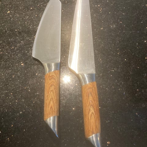 Kaksi kokkiveistä, toinen on Ikean VARDAGEN-kokkiveitsi, tummanharmaa, 20 cm. Toinen 20 cm. Ikean veitsi on vähän käytetty. Hinta yhteensä 7 e. Voin postittaa postimaksuja vastaan. Siistit ja ehjät.
