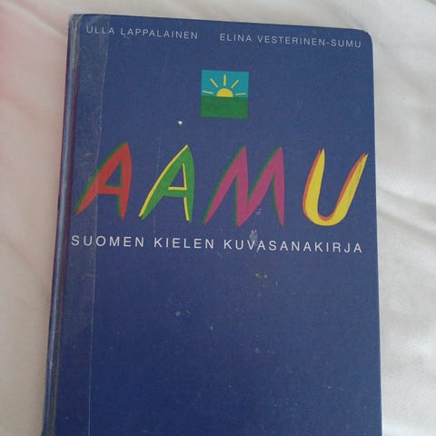 Hauska ja selkeä kirja suomen kielen oppimiseen kuvien avulla.