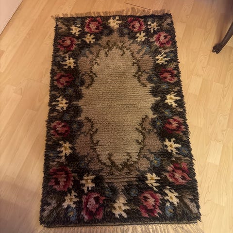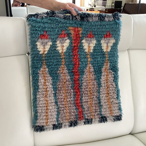 Myydään itse tehty ryijy ja taottu pidike.