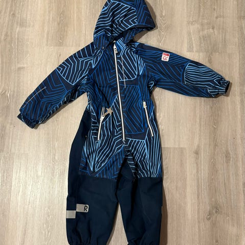 Reiman tummansininen välikausihaalari kokoa 104. Haalari todella hyväkuntoinen, mutta jalkalenksut puuttuu. Lenksujen kiinnitysnapit paikoillaan.