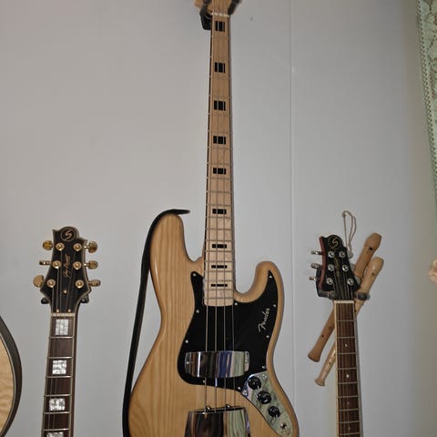 Fender Bullet sähkökitarat. Sähkökitarassa on punainen metallinhohtoinen runko, musta pleksi ja vaalea vaahterakaula otelautoineen. Tallassa on kiinteä talla yksittäisillä tallapaloilla ja yksi humbucker-mikrofoni. Kitarassa on yksi säätönuppi sekä kytkin rungon etuosassa. Soveltuu sähkökitaransoittoon erilaisissa musiikkityyleissä. Tarkemmat tekniset tiedot, kuten valmistusvuosi ei ole tiedossa mutta veikkaisin olevan vuodelta 2010. Kitara on vasenkätisille.