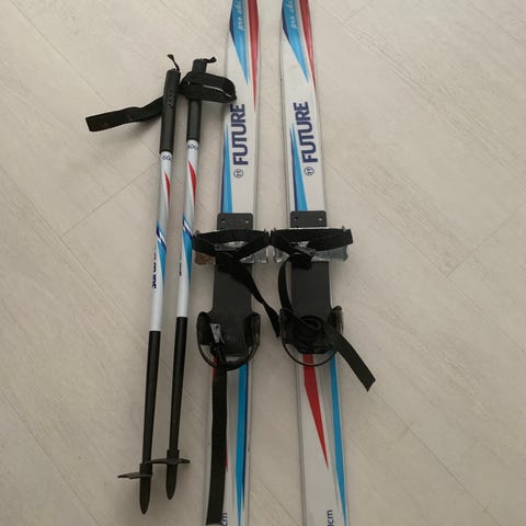Todella siistit sukset, sauvat ja monot.