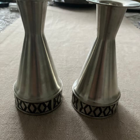 Käsintehty kynttilänjalka 1970-luku, valmistettu Norjassa/ Norwegian Pewter, korkeus n. 17cm