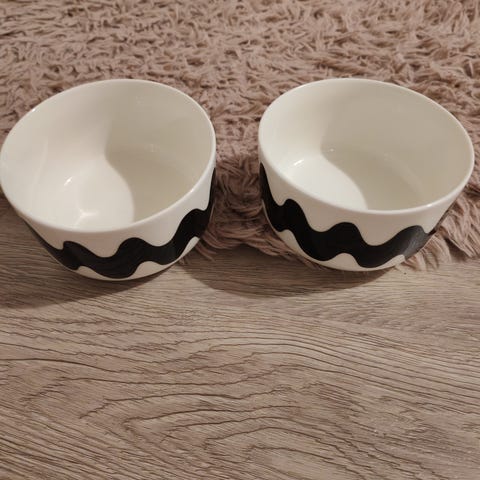 2kpl Marimekko Lokki mukeja 2,5dl. Väri mustavalkoinen. Mukit eivät ole koskaan käytössä olleet. Vain käyttöönottopesu tehty ja viettäneet sitten vain vitriinissä koristeena. Kuin uudet siis. Moitteettomassa kunnossa.