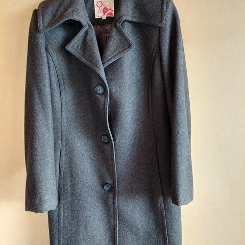 Puolipitkä vuorellinen villakangastakki.