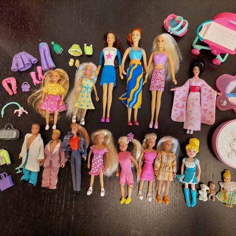 Aitoja Mattelin Barbie-nukkeja. Ehjiä, mutta leikittyjä. Toinen käynyt "kotikampaajalla", toinen saanut huulimeikkiä. Kaipaavat kylpyä, jos vielä leikkeihin päätyvät (lämpimässä varastossa vuosikymmeniä) eivätkä keräilijälle. Tarjoa yhdessä tai erikseen.