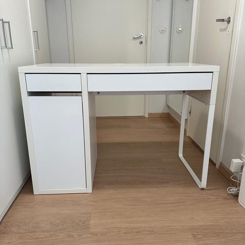 Myydään hyvä kuntoinen Ikea micke työ / koulupöytä seuraavalle kuka tätä tarvitsee. Pöydän koko on 105x50cm oikealla puolella vetolaatikko ja pieni kaappi jossa 3 tasoa. Pöydässä myös läpivienti johdoille, sekä integroitu johtokouru jonne saa jatkojohdon.