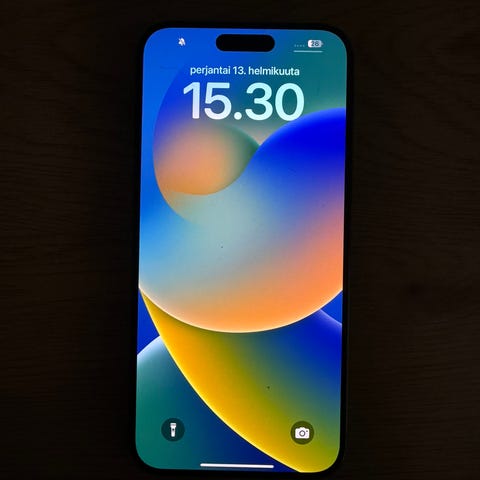 Kuvien mukainen iPhone 15 ProMax. Akun kapasiteetti 83%. Puhelimessa ollut kuvan mukainen suojakuori alusta alkaen. Puhelin pudonnut viime elokuussa ja Fonumilla vaihdettu etulasi (hinta 559€). Tällä takuu 2 vuotta 2.8 alkaen. Puhelin Kuopiossa, jossa voi testaila. Vaihtuu vain käteiseen rahaan, mobilepay tai tilillä näkyvään tilisiirtoon. Latauspiuha mukaan ja muistaakseni alkuperäinen laatikko löytynee myös.