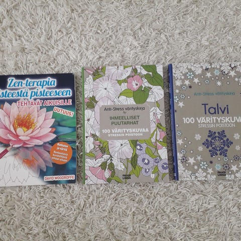13 kuulakärkikynää, 2 punaista värikynää, lyijykynä, 3 pyyhekumia, värillisiä liituja, terotin, viivotin. Ja kovakantinen vihko, jossa jäljellä noin puolet sivuista (ne, joissa oli omaa tekstiäni, revin pois).