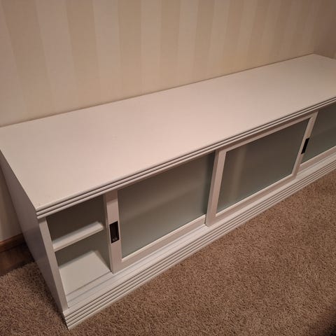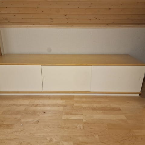 Vitriinihyllykkö, Ahti Taskinen/Niemi Design. Valkoinen ja koivu. Korkeus kuvassa 134 cm, leveys 180 cm ja syvyys 34 cm. Lisäksi löytyy vielä yksi kerros lisää laseineen päivineen. Myydään muuton vuoksi. Voi tulla katsomaan. - Koti savuton. Vain nouto ja käteinen.
