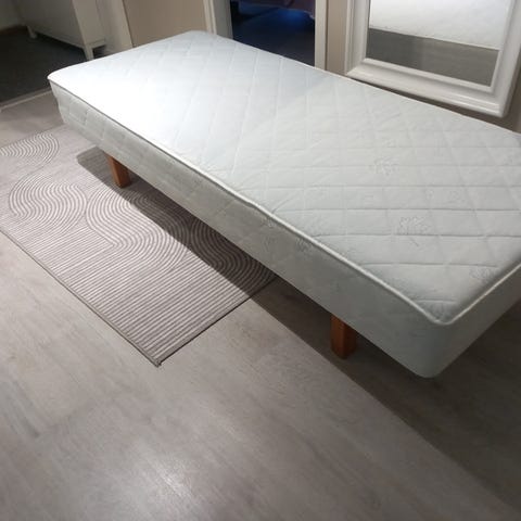IKEA sänky. Puinen runko ja vaalea patja. Sopii yhden tai kahden hengen nukkumiseen makuuhuoneeseen tai vierashuoneeseen. Tarkat mitat 160x200 irotettavat jalat