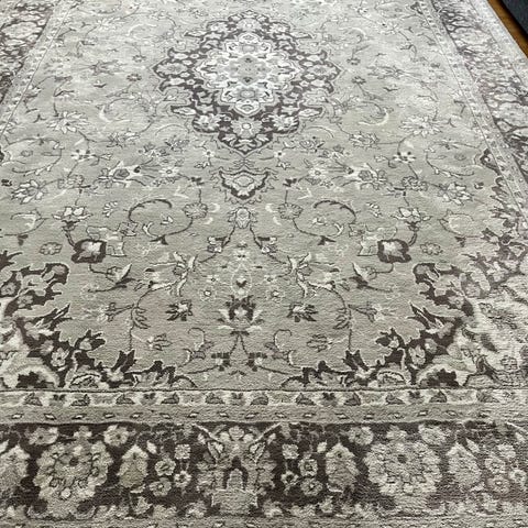 IKEA matto harmaa kuviollinen. Matossa on vaalea pohja ja tummempi, toistuva koristekuviointi. Sopii esimerkiksi olohuoneeseen tai makuuhuoneeseen tuomaan pehmeyttä ja yhtenäistä ilmettä lattialle. Materiaali ja tarkat mitat eivät ole tiedossa, mutta matto on suorakaiteen muotoinen ja tarkoitettu sisäkäyttöön.