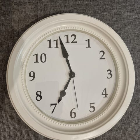 HOME seinäkello ja koristekyltti. Kyltissä on puupintaa jäljittelevä tausta, suuret värilliset HOME-kirjaimet.