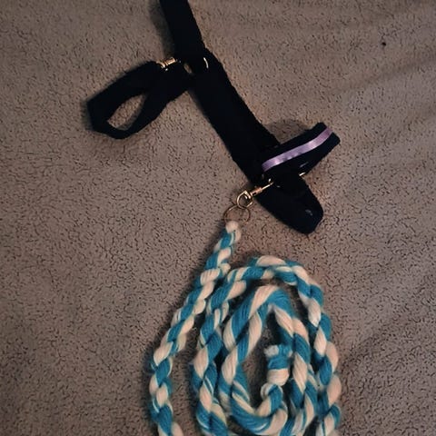 Hyvässä kunnossa oleva itsetehty kepparin riimunaru ja riimu.