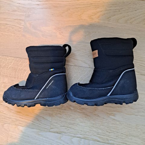 Kavat voxna lasten talvikengät unisex-mallia. Väri musta. Kengissä on paksu, kuvioitu kumipohja, joka antaa pitoa liukkaalla alustalla.