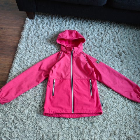 Tyttöjen softshell takki, joka on kokoa 146. Takki on ehjä. Takissa oleva helma kangas vähän nypyttynyt käytössä (katso kuva), mutta muuten takki on siisti ja hyväkuntoinen seuraavalle käyttäjälle.