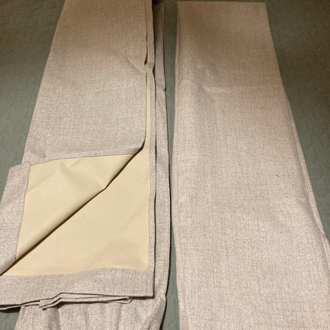 2kpl Jysk Aldra pimennysverhoja (140x175cm). Sävy harmaa. Eivät läpäise valoa.