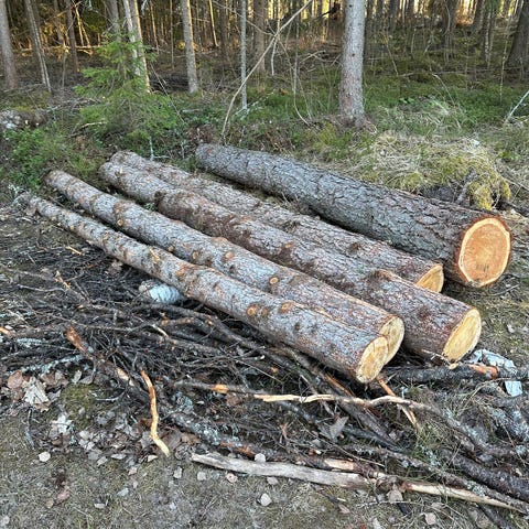 Itse täytyy kaataa ja kuljettaa pois (myös oksat siivota).