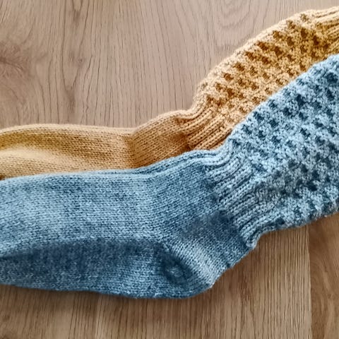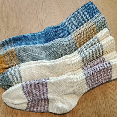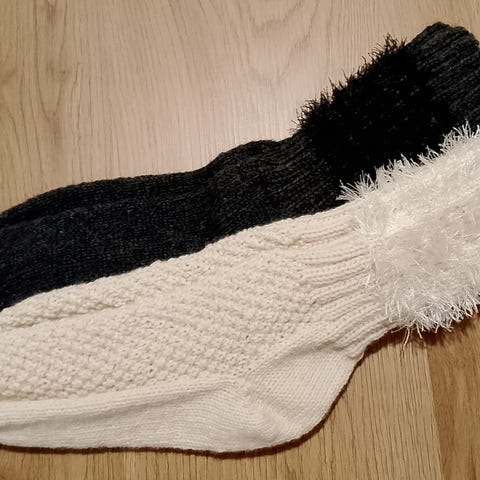 Myydään uudet käsinkudotut aikuisten villasukat.