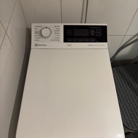 Siemens päältä täytettävä pesukone, väri valkoinen. Pesukoneessa on mekaaniset valintanupit ja painikkeet pesuohjelmien, lämpötilan ja linkousnopeuden säätöön.