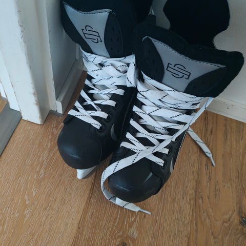 Bauer jääkiekkoluistimet, koko noin 35. Väri musta valkoisilla nauhoilla.