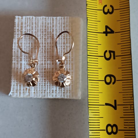 Kuvassa on mitat ym tiedot, kivi on vihreän sävyinen, leimat K-esydänkruunu 585 joku logo I7, paino 2,9g, erittäin kauniit uudenveroiset