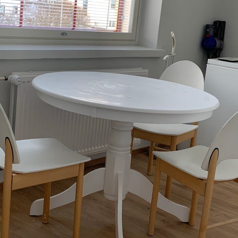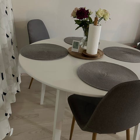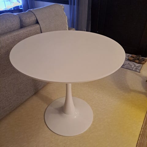 Siro pyöreä ruokapöytä 3:lle. Metalliset jalat. Pöytälevyn halkaisija 90 cm, korkeus 74 cm.