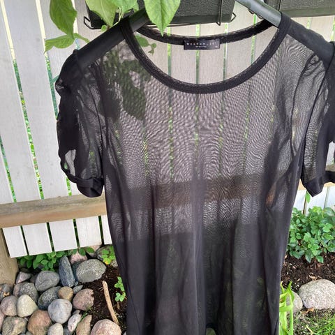 Musta vetoketjullinen pusero. Materiaali hyvin joustavaa ja liukasta.