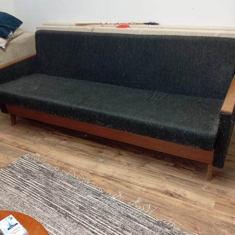 Kunnostettu 60-luvun nojatuoli. Verhoiltu uudelleen laadukkaalla Designers Guildin -kankaalla ja pehmusteet uusittu. Toisessa käsinojassa hieman kolhuja, huomioitu hinnassa.