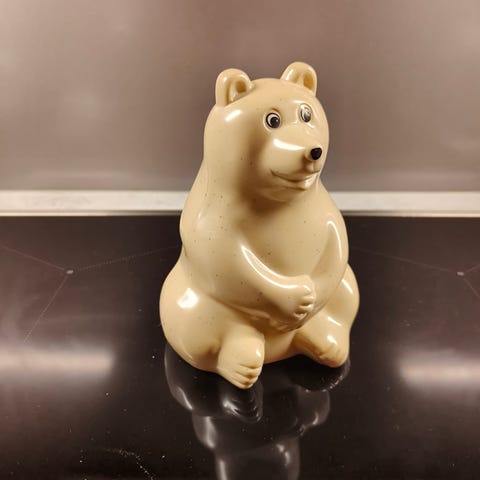 Säästöpossu, jossa oma tulppalukkopohja. 9 cm korkea.