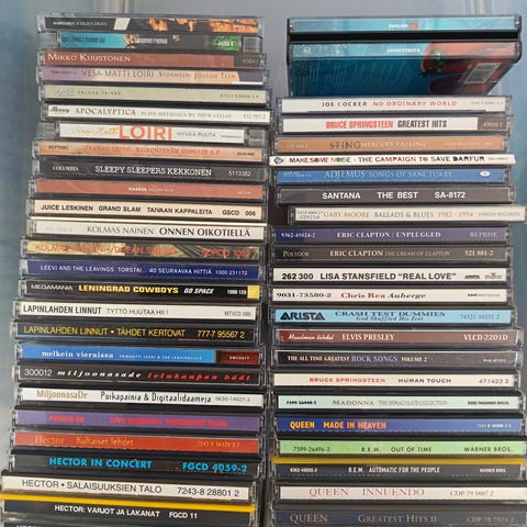 Myydään pahvilaatikollinen 80-2000-luvun CD levyjä.