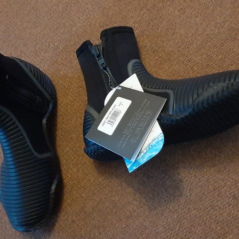 Saappaat, käytetty kerran melonnassa ja 2 kertaa ollut mukana vaelluksella, ilman käyttöä. Koko ehkä 37, en löydä kokoa. Toisessa saappaassa pieni naarmu kynnestä tai kivestä. Vain haku 70200.