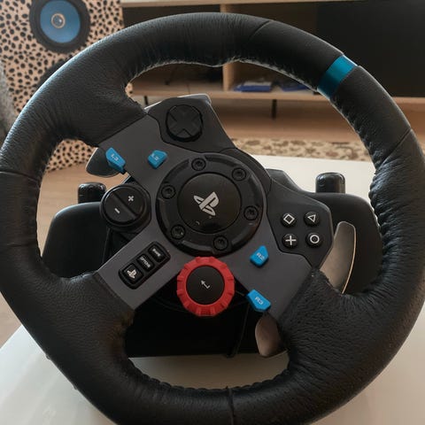 Logitech G29 ajopeli rattiohjain polkimilla. Rattiohjaimessa on PlayStation-näppäimet, vaihdenäppäimet ja säätörulla etupaneelissa. Ratti on verhoiltu nahalla ja siinä on useita toimintapainikkeita. Mukana on erillinen poljinsetti, jossa on kaasu-, jarru- ja kytkinpoljin. Sopii ajopelien pelaamiseen yhteensopivilla pelikonsoleilla ja tietokoneilla, tarkka yhteensopivuus riippuu laitteesta ja pelistä. Vähän käytetty. Pieni nirhauma ratin alareunassa näkyy kuvassa. Ainoastaan nouto tai kulkeutuu arkisin myös poriin.